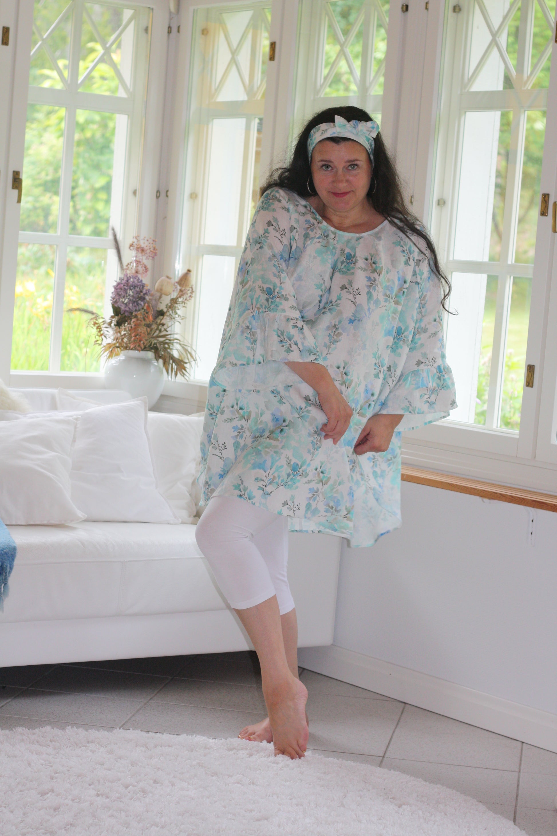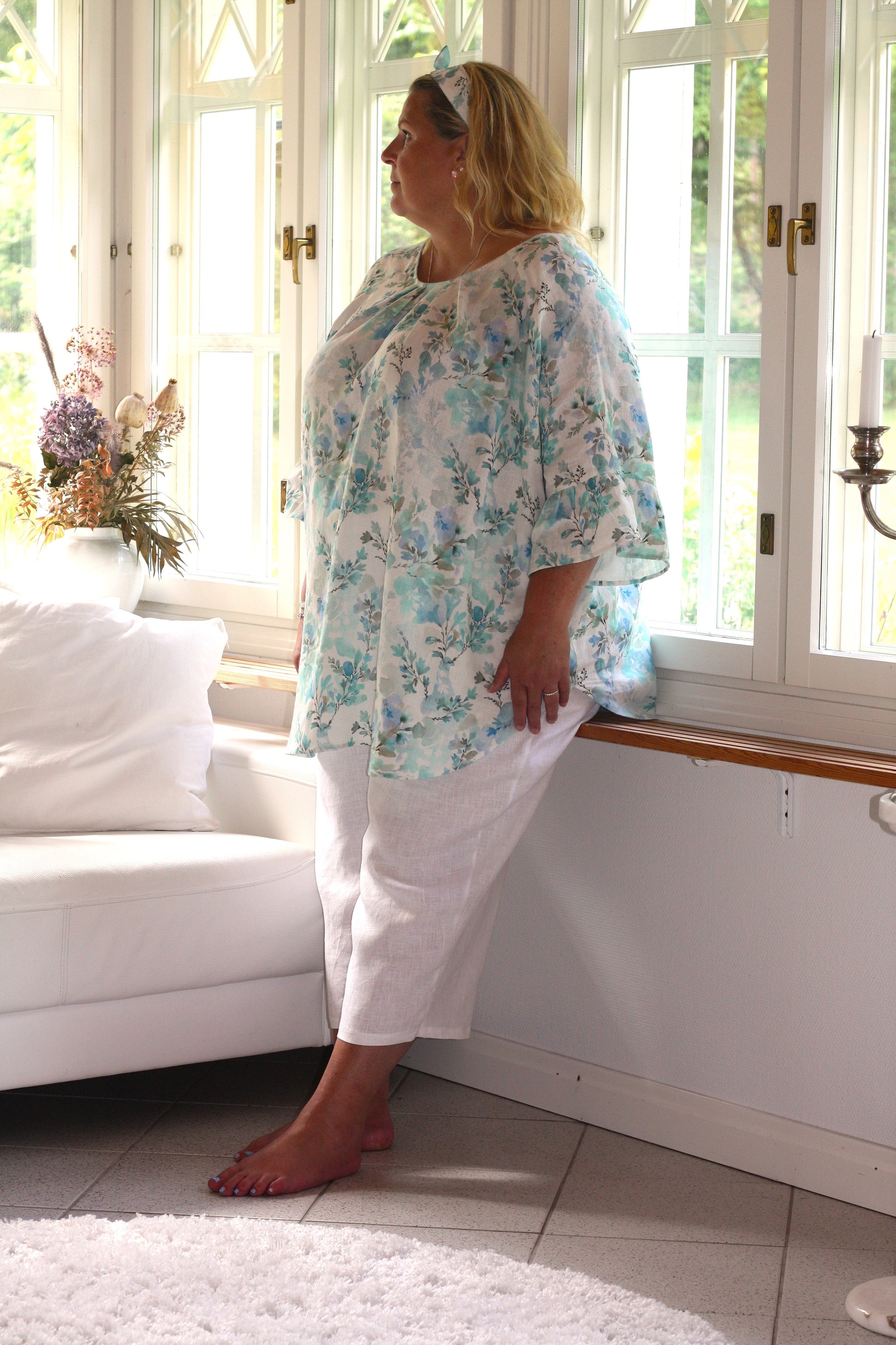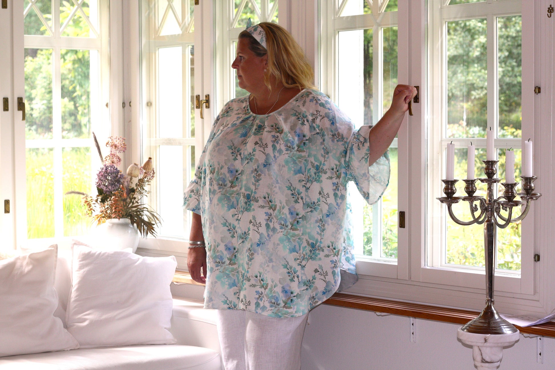 Monikäyttöinen tunika on helppo yhdistää farkkuihin tai leggingseihin rennon tyylin luomiseksi tai viimeistellä juhlavaksi asuksi koruilla ja asusteilla. Tämä kaunis kukallinen pellavatunika on vaatekaappisi uusi luottovaate!
